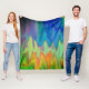 Una manta de lana con hermosos colores rojo, azul, verde y amarillo. La imagen y el texto se pueden personalizar. Obra de arte original de W.B.
