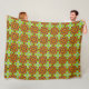Colorful geometric mandala pattern in orange, green, and blue displayed hanging on a rod and flat on a surface, showing texture.