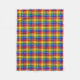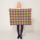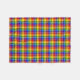 Una manta de lazo con un colorido estampado a cuadros en los colores del arcoiris. Un patrón original de Plaidwerx.