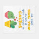 Esta colorida manta presenta dos divertidos cactus personalizados enamorados, con tres corazones rojos sobre un fondo blanco. La leyenda, en caligrafía azul y todos los tipos de letra amarilla, dice que aún te abrazaría aunque fueras un cactus.