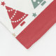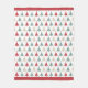Esta manta temática navideña presenta un colorido patrón de árboles navideños rojos, verdes y dorados de diseño moderno. Las imágenes se colocan sobre un fondo blanco, con un borde rojo coincidente en la parte superior e inferior. ¡Festividad! Crédito de diseño de patrones a https://www.etsy.com/shop/ephrazydesign.
