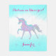 Tan cómodos y acogedores, ¡una hermosa manta para chicas de todas las edades! Cuenta con un brillante unicornio purpurina, hecho en lavanda, rosa y azul acuático. Haz que esta manta sea única tuya - Haz clic en "personalizar" para añadir fácilmente tu propio nombre. Ideal para la escuela, la residencia o el hogar. ¡Hace un regalo maravilloso!
