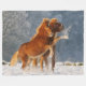 Dos caballos islandeses, un potro y su mami jugando bola de nieve en un paisaje nevado, lindos ponis fotografiados por Katho Menden. Esta blanda y acogedora manta de lana es un regalo para los caballos.