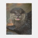 Un Otter corto asiático con arañazos cuando salía del agua. El agua cae sobre sus bigotes. Cuando un compañero se mudó, miró a su alrededor sorprendido con la boca abierta mostrando sus dientes.