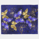 Composición de lujosas mariposas de zafiro y joyas de oro sobre fondo de textura azul.