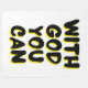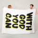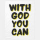 Este diseño de manta de lana tiene las palabras "Con Dios que puedas" en un estilo de burbuja impreso más letras negras y contorno de sombra amarilla con un estilo de tipografía en este tema basado en la fe. Esta manta está hecha de una pulga de poliéster 100% suave y acogedora de carnicería con una impresión de sublimación de color vibrante de borde a borde y un punteo de doble borde con una máquina trasera de color blanquecino lavable.