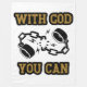 Esta manta de lana tiene un diseño que presenta un tipo de letra de impresión Kompot Slab con letras de color dorado contorno negro que muestra la frase "Con Dios que puedes" con un estilo de impresión de tipografía en este fuerte tema de cita de la biblia de fe. Esta manta está hecha de una pulga de poliéster 100% suave y acogedora de carnicería con una impresión de sublimación de color vibrante de borde a borde y un punteo de doble borde con una máquina trasera de color blanquecino lavable.