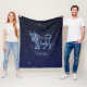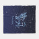 Una manta de flores con el símbolo de Taurus en azul plateado suave, cubierto con las estrellas de la constelación, contra un fondo estrellado del cielo clasificado de azul oscuro a negro.