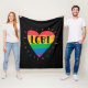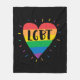 Esta obra de arte muestra un corazón arco iris con las iniciales LGBT.