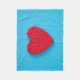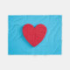 Este diseño presenta una imagen de un corazón rojo brillante que originalmente estaba hecho de fieltro; está colocado sobre un fondo azul claro.