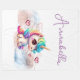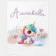 Esta manta mágica y encantadora cuenta con un lindo unicornio bebé con pelo de arco iris y ojos grandes. El pequeño unicornio dulce está sentado en una nube purpurina azul y rosa, y varios corazones de Relieve metalizado rosado flotan a su lado. Un nombre de ejemplo se imprime en la parte superior que puede personalizar para incluir su propio nombre o texto personalizado.