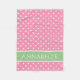 Manta Polar Corazones blancos sobre rosa con verde personaliza