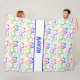 ¡Una manta de lana súper suave, cubierta de corazones de neón! Personaliza con cualquier nombre en el cartel del medio. Las mantas están disponibles en tres tamaños.