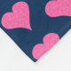 Corazones rosados con puntos de polka, en un fondo azul marino