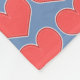 Corazones de estilo artesano rojo con un patrón de punción sobre fondo azul.
