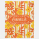 Impresión a rayas animada con flores amarillas y follaje naranja sobre un fondo crema.