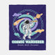 Explore the universe with this illustration of an astronaut looking through a telescope amid planets, stars, and rockets. Features the text "Cosmic Wanderer: Dream. Drift. Discover." Perfect for space and science lovers