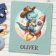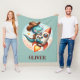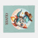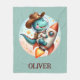 Esta adorable manta personalizada de pulpa cuenta con un lindo dinosaurio T-Rex, equipado para la acción de rodeo intergaláctico. Un clásico gorra de vaquero se sienta sobre su casco astronauta, mientras el T-Rex monta un cohete espacial como un bronco balancín. Personalice esta manta con el nombre de su hijo por una mancha única que encenderá su imaginación y alimentará sus sueños de exploración espacial.