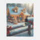 Step into a charming winter wonderland with this captivating AI-generated image, perfect for adding a touch of festive warmth to your products. A picturesque log cabin, nestled among snow-covered pine trees, twinkles with hundreds of warm white Christmas lights, adorned with wreaths and glowing decorations. Snow gently blankets the roof and surrounding landscape, creating a serene and inviting atmosphere. In the foreground, a rustic wooden fence draped with festive red bows leads to an old-fashioned mailbox, brimming with holiday mail. Perched gracefully on the mailbox are two vibrant red cardinal birds, adding a delightful splash of color and a symbol of winter's beauty. This enchanting scene evokes feelings of peace, joy, and holiday spirit, making it ideal for greeting cards, home decor, apparel, and more. Capture the magic of a snowy Christmas Eve with this heartwarming design!