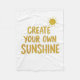 Orange "create your own sunshine" text with the sun on white background text design.