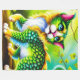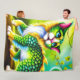 Esta manta de lana tiene una criatura gato encima.