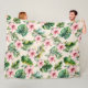 Manta Polar Crema Rubor Rosa Tropical Sale Flores Hibiscus