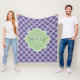 Una elegante y polvorienta manta de pulpa de cuatrefoil púrpura con una insignia de vieira en verde suave que puede personalizar añadiendo su nombre y monogramado inicial a. Esto es parte de la Colección de Primavera Verde Ultra Violeta y Nilo. Elija entre tres tamaños.