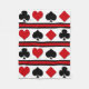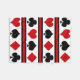 Juego de iconos de juego de tarjetas aislados en fondo rayado negro, rojo y blanco