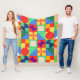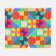 Esta manta de lana media tiene un diseño Bauhaus de cuadrados con formas extrañas dentro, repetidas a lo largo del diseño.