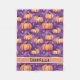 Suave con esta fresca y linda manta de lana con un caprichoso patrón de calabaza sobre un fondo morado. Perfecto para todas las edades, es colorido y encantador, y puede ser personalizado con tu nombre.