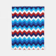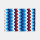 Una pequeña manta de lana de tamaño pequeño con un diseño de patrón colorido y bonito de chevrones rojos, blancos y azules.
