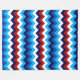 Una manta de mimbre de gran tamaño con un diseño de patrón colorido y bonito de chevrones rojos, blancos y azules.