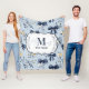 Manta Polar Custom Elegant Blue Bow Floral Monogram