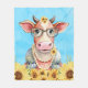Cute Cow Sunflowers Fleece Blanket