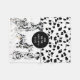 Perros de raza dálmata y un cachorro con un patrón de manchas dálmatas en blanco y negro y una insignia con la frase "Busca los puntos felices de la vida". Personalice cambiando el texto.