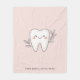 This light pink fleece blanket features a cute botanical tooth illustration and is personalized with your dental office name in a clean, sans serif font.