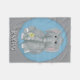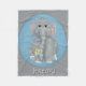 Una manta de lana de elefante dulce y divertido. Azul y gris con nombre personalizado. Un tierno elefante gris sostiene una flor amarilla en su baúl,