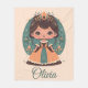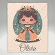 Caricatura personalizada, linda, princesita con vestido verde y rosa con fondo rosa suave.