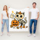 Manta Polar Cute Skeleton Cat with Pumpkin Fleece Blanket