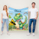 Manta de felpa personalizada de dinosaurio trex verde juguetón.