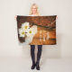 El encantador White Daisies y Cowboy Boots Country Western Boda Fleece Blanket es perfecto para que la recién casada novia y el novio se escabullan en una noche fría. Esta blanda y acogedora manta matrimonial de moda de campo personalizado cuenta con una fotografía floral realzada digitalmente de un par de botas de vaquero marrón con un ramo de flores de margarita blanca y un velo de novia blanco con fondo de madera de granero templado.