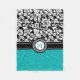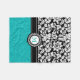 Elegante damasco blanco floral sobre un fondo negro y sobre el damasco turquesa. Monograma opcional