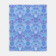 Fleece Blanket en un vintage William Morris con motivos florales jacobinos, realzados digitalmente y coloreados, en azul cobalto y turquesa sobre fondo blanco