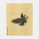 Una simple silueta de un cuervo vivo (Corvus corax, hecho al estilo nórdico/celta, superpuesta a una imagen antigua de fondo de papel, que le da un toque medieval. Personalizar agregando su propio texto.