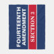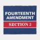 Decimocuarta Enmienda Sección 3. La sección 3 de la 14ª enmienda dice: "Ninguna persona será senador o representante en el Congreso, o elector del Presidente y el Vicepresidente, ni ejercerá ningún cargo, civil o militar, bajo los Estados Unidos, o bajo ningún Estado, que, habiendo prestado anteriormente un juramento, como miembro del Congreso, o como funcionario de los Estados Unidos, o como miembro de cualquier legislatura estatal, o como funcionario ejecutivo o judicial de cualquier Estado, apoye al La Constitución de los Estados Unidos, deberá haber participado en la insurrección o rebelión contra los mismos, o haber prestado ayuda o consuelo a sus enemigos. Pero el Congreso puede, por una votación de dos tercios de cada Cámara, eliminar esa discapacidad". Recuerden a la gente en su próximo mitin político al aire libre, o cuando estén sentados y suministren información en una cabina partidaria en un frío evento al aire libre del otoño, que las personas responsables de la insurrección, sobre todo su clavija, deben ser consideradas responsables y están descalificadas de cargos públicos debido a la Decimocuarta Enmienda a la Constitución de los Estados Unidos. Descripción del diseño: En todo el espacio, un fondo azul. En la mitad superior, las palabras "Decimocuarta enmienda". En la mitad inferior, una banda ancha de rojo patriótico, con un borde de arriba abajo en blanco, y en el centro de la banda, las palabras "Sección 3" en una letra de serif blanca con mayúsculas.