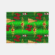 Un bonito diseño de Navidades con un patrón de decoración navideña que incluye árboles dorados de Navidad, bayas doradas y rojas, arcos de seda roja y un adorable muñeco de nieve vestido con sombrero y chaleco de terciopelo rojo, todo sobre un fondo verde para añadir algunos Navidades a tu casa durante las vacaciones.