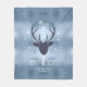 Esta manta de lana presenta la silueta de las garzas de venado y copos de nieve en la marina oscura sobre un fondo azul cielo de efecto texturado. Se ha proporcionado texto opcional de 'Felices Fiestas' y una plantilla para agregar tu nombre y/u otro texto. Busque ID861 a ID864 para ver opciones de color adicionales y otros productos en este moderno conjunto de diseño de Navidades.