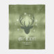 Esta manta de lana presenta la silueta de las garzas de venado y copos de nieve en verde oscuro sobre un fondo verde musgo de efecto texturado. Se ha proporcionado texto opcional de 'Felices Fiestas' y una plantilla para agregar tu nombre y/u otro texto. Busque ID861 a ID864 para ver opciones de color adicionales y otros productos en este moderno conjunto de diseño de Navidades.