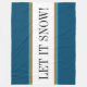 Este diseño estacional festivo incluye rayas de carreras marrones y azules que resaltan el texto "LET IT SNOW!" dentro de una franja blanca horizontal central contra las anchas y negritas franjas exteriores azules verde azuladas.