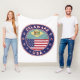 Insignia de Delaware con bandera de Delaware y bandera de los colores de Estados Unidos, forma redondeada. Emblema de Delaware. Sello de Delaware. Colección de Estados Unidos.